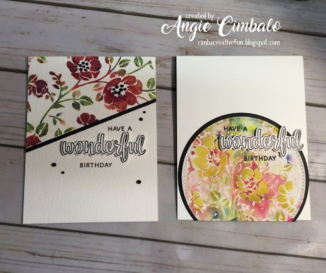 Hello and welcome! I have 2 birthday cards for you using a new to me technique called Stencil Monoprint. That's the challenge theme this month over at CAS Mix It Up and I wanted to give it a try. Here's a list of supplies I used on my cards: